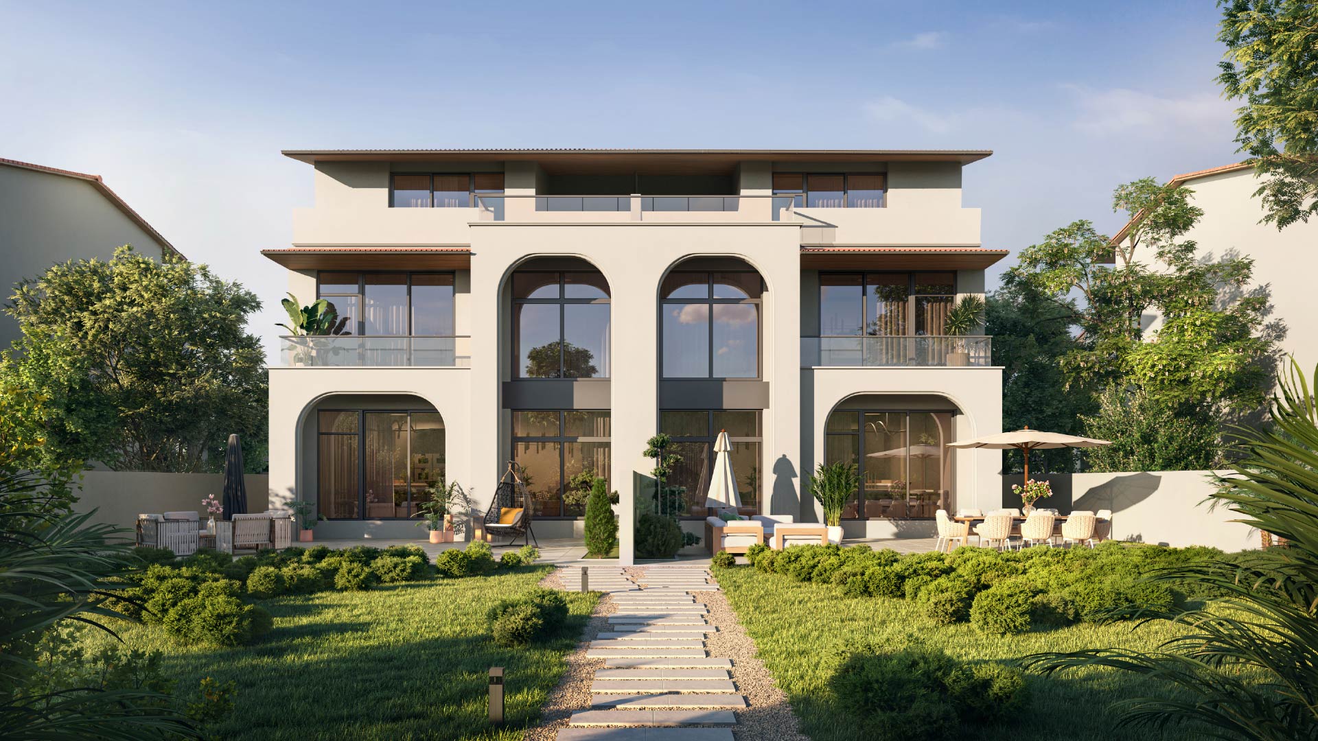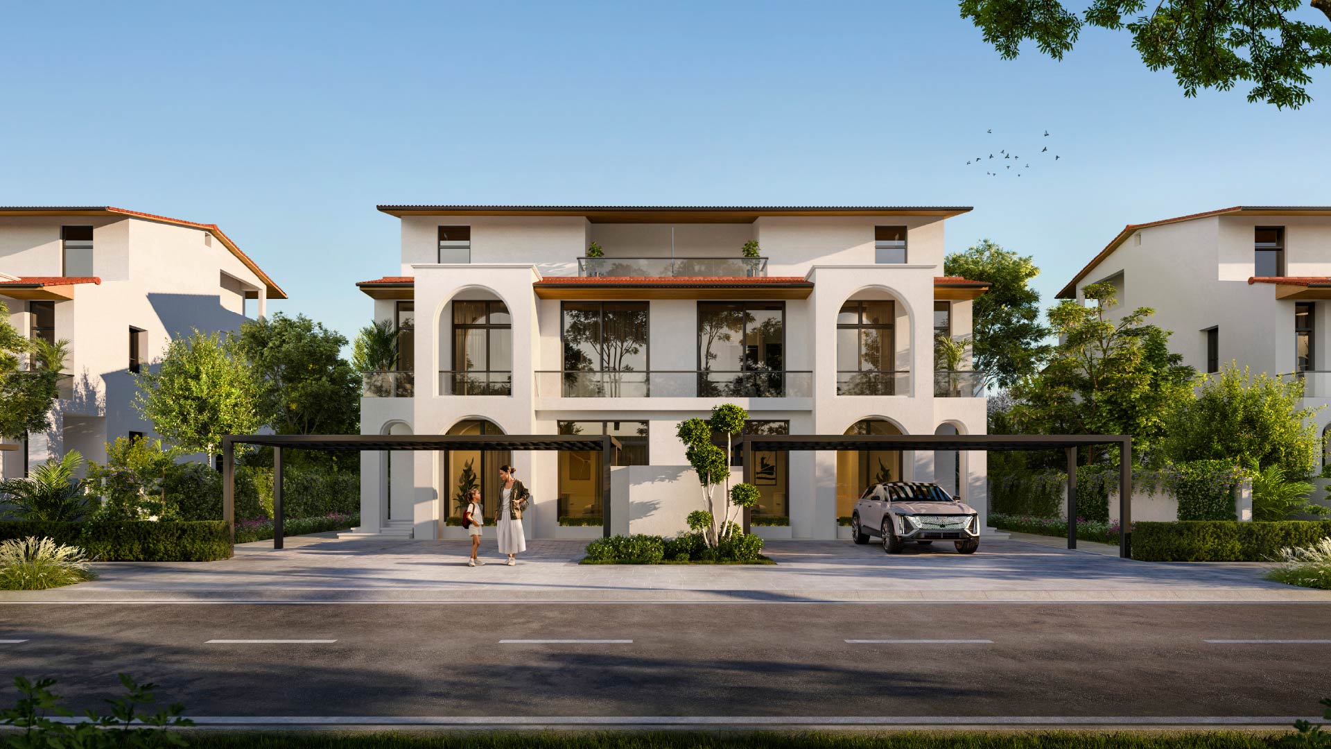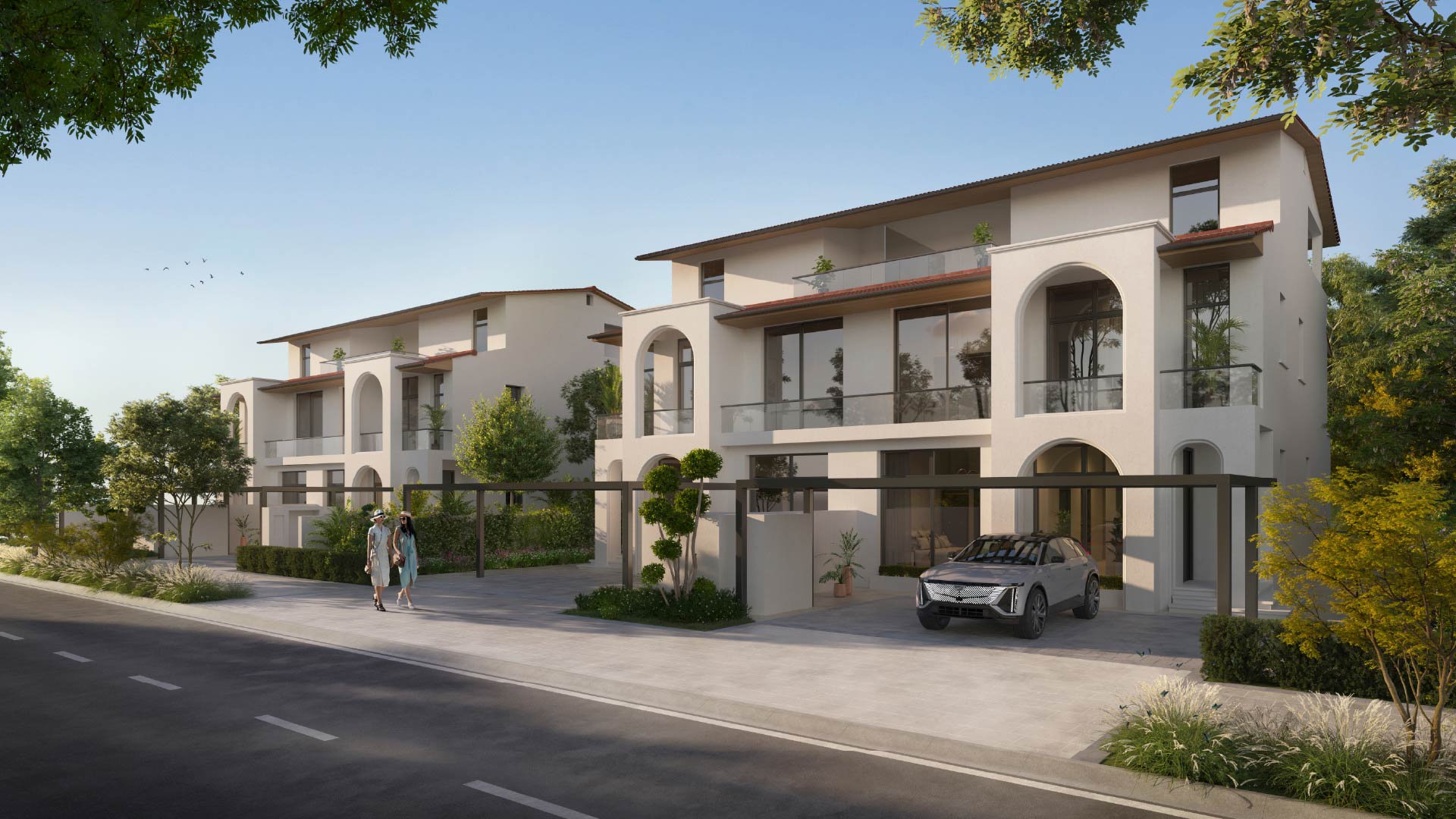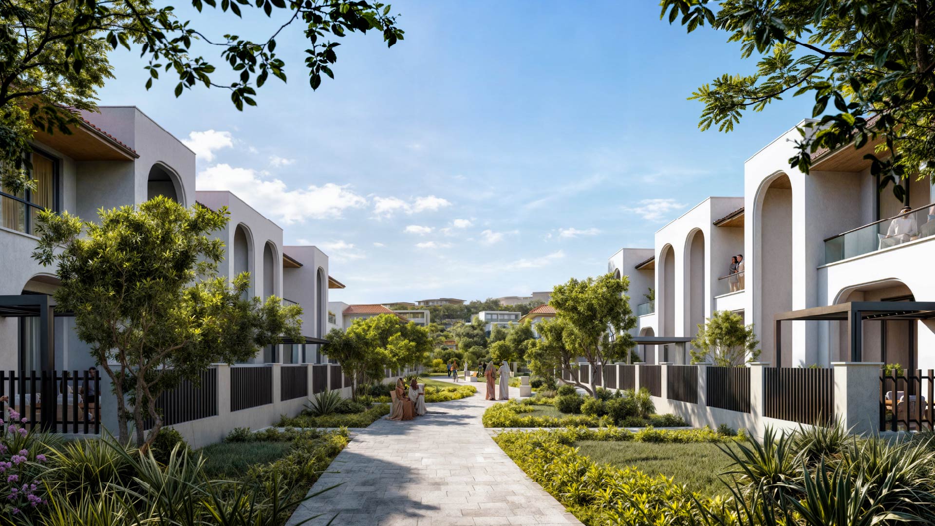 Nawayef Village is a signature hillside residential community by Modon Properties, located on the elevated terrain of Hudayriyat Island. The neighborhood features a refined collection of townhouses and twin villas inspired by classic Andalusian architecture. Designed for walkability, the village centers on a lush park and a retail street, connected by shaded paths and cycling tracks. Residences range from 2,669 to 3,670 square feet, boasting high ceilings and private outdoor spaces.