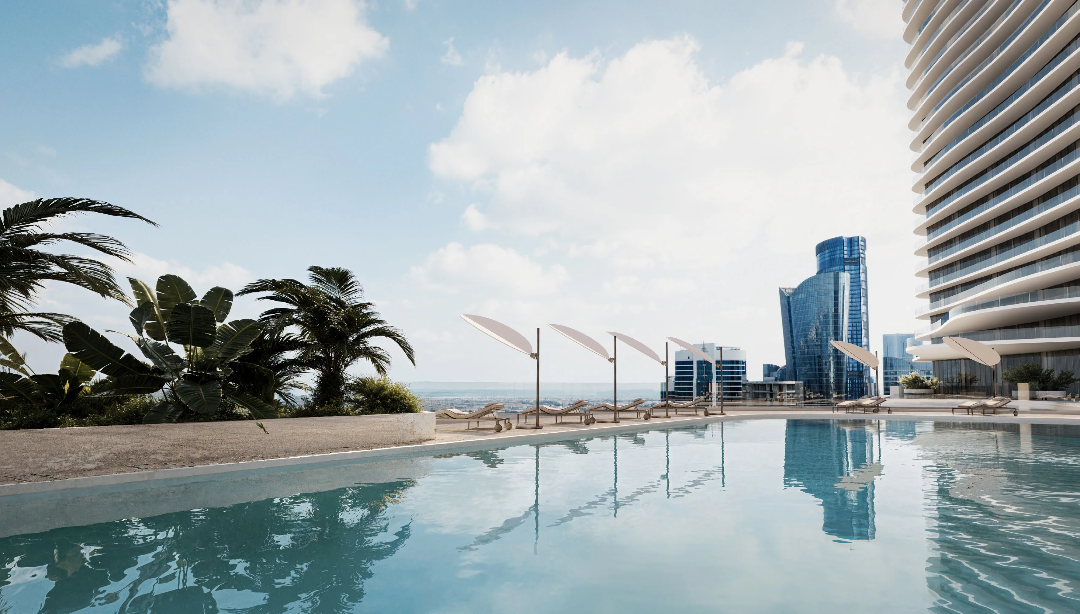 A resort-inspired lifestyle awaits with multiple pools, a wellness center, dedicated ladies’ gym, yoga spaces, spa, cinema, and gaming lounge.