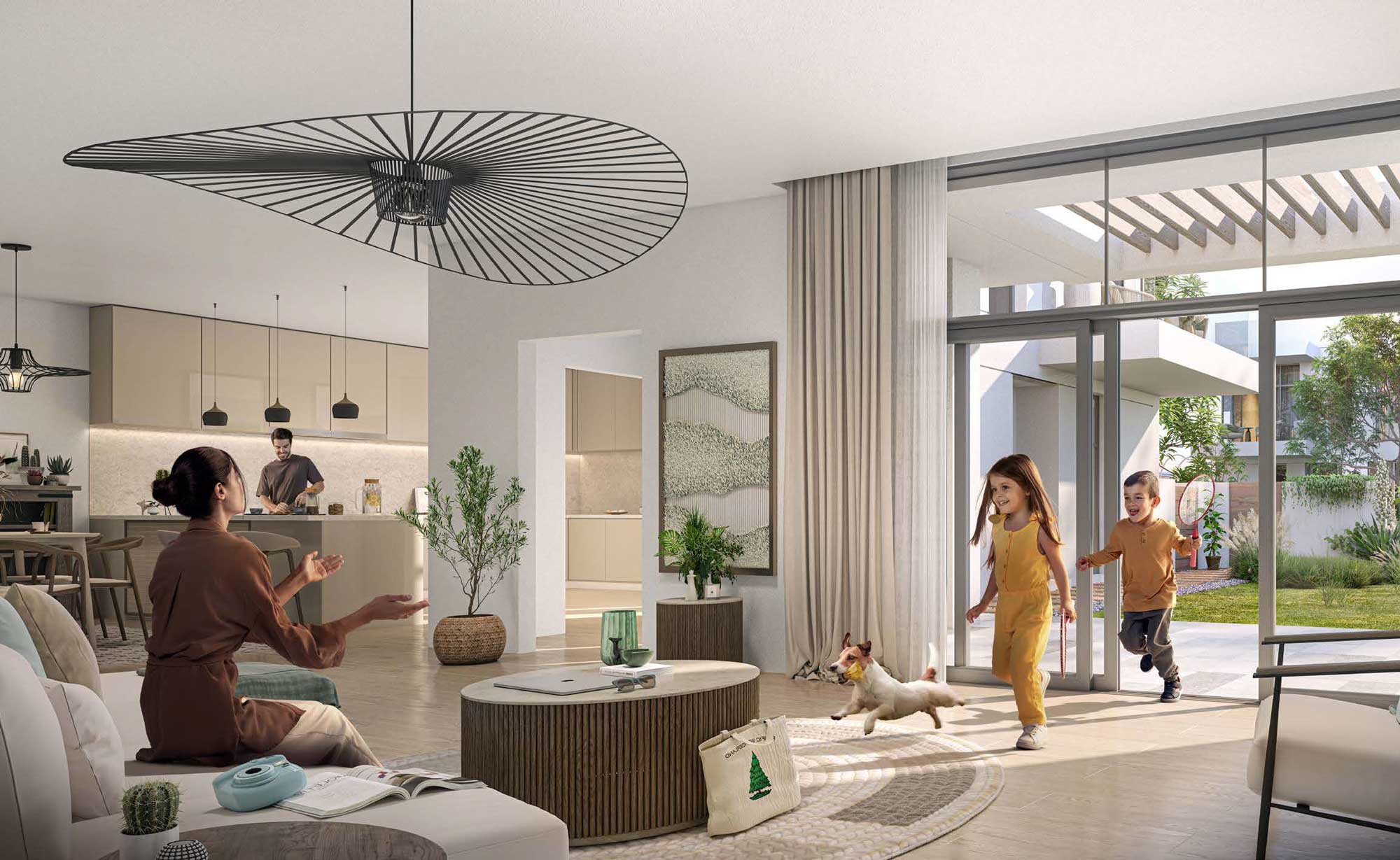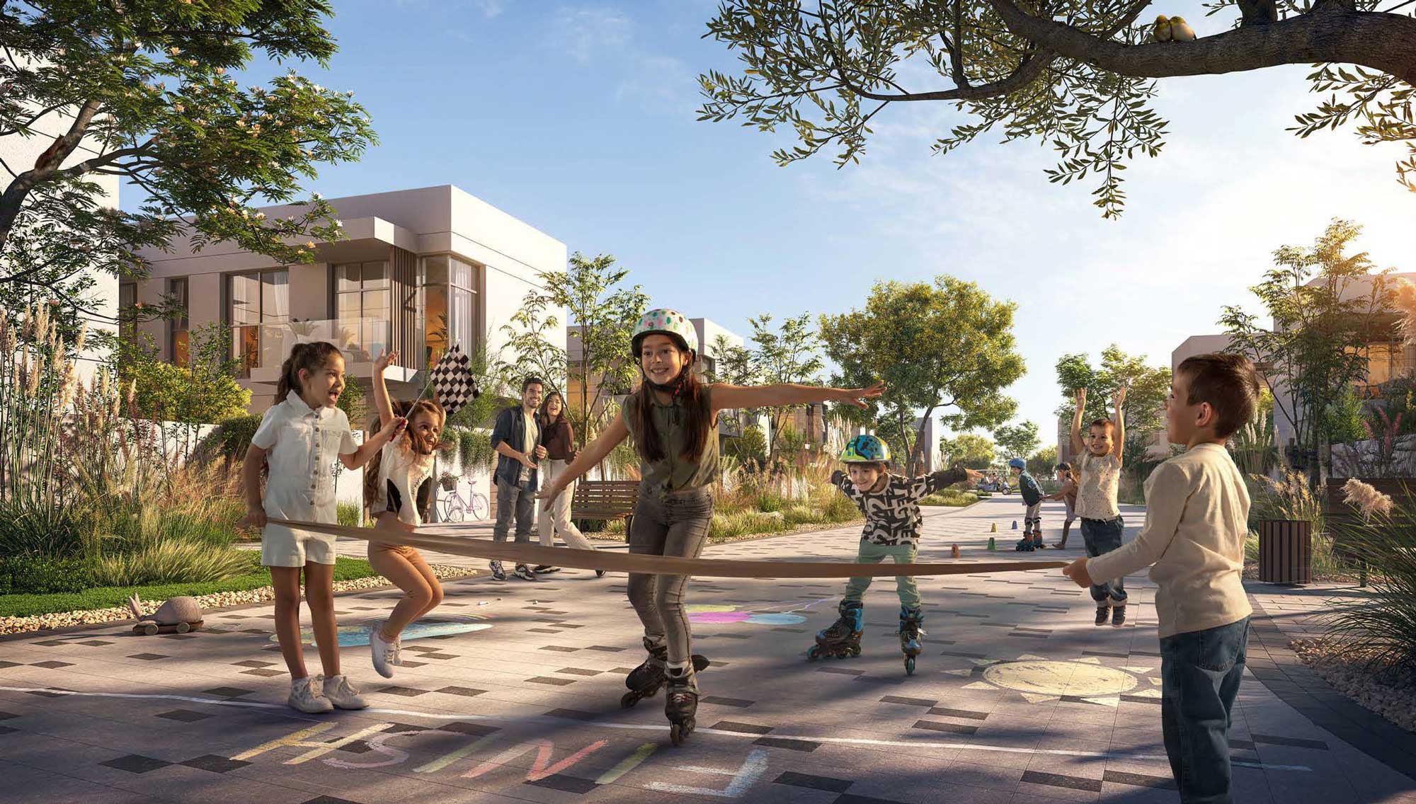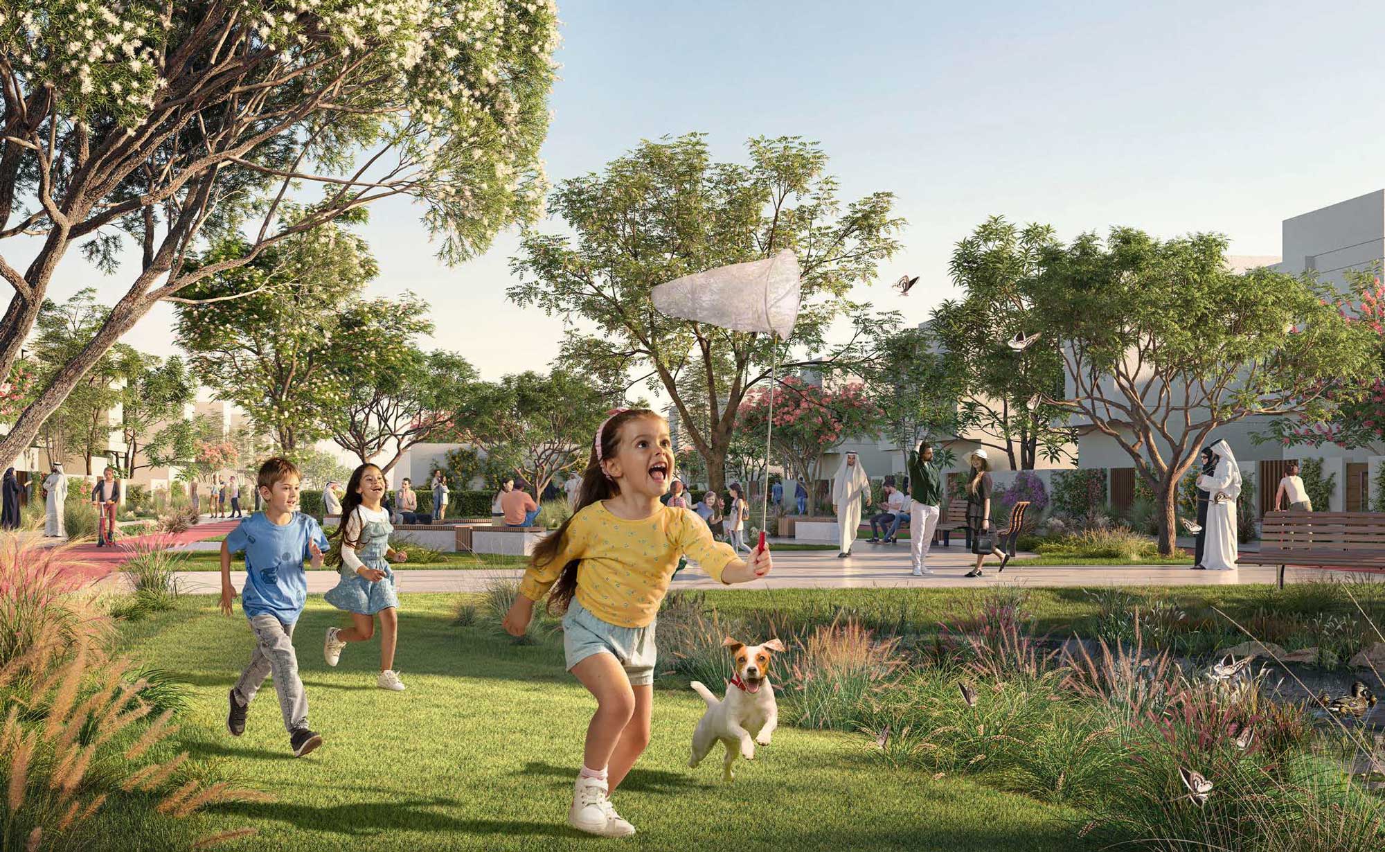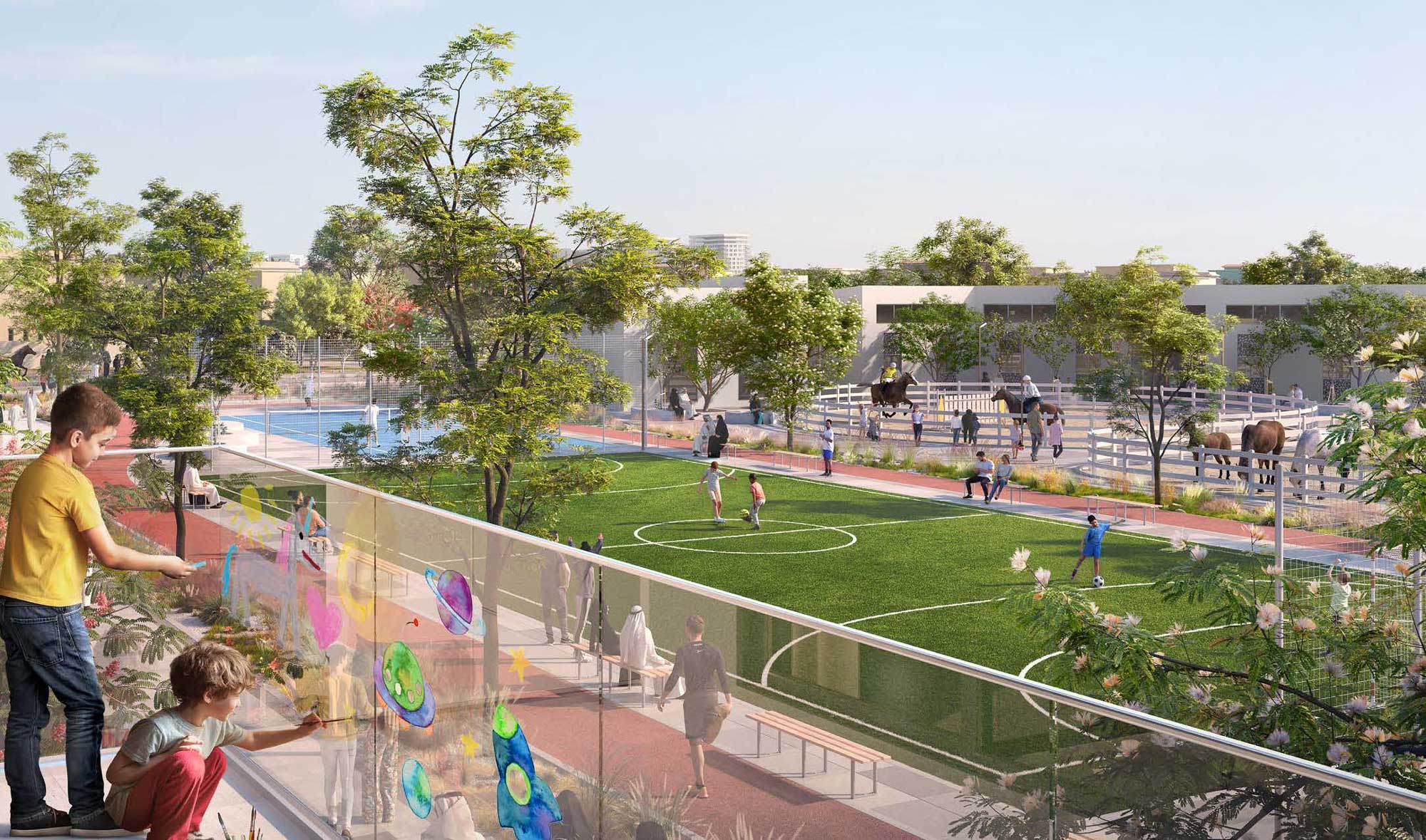 The Sustainable City – Yas Island is Abu Dhabi’s premier eco-smart community, developed by Aldar Properties and Diamond Developers. This netzero energy project features 864 sustainable homes, including 1–3 bedroom condominiums and 3–4 bedroom townhouses. The community is divided into 10 car-free clusters, connected by a lush central green spine and pedestrian walkways. Every residence is powered by renewable energy, offering up to 50% savings on water and electricity bills. Unique amenities include biodomes for vertical farming, an equestrian center, an autism center, and an animal sanctuary. Residents benefit from shared electric buggies, 5 years of free service charges, and a 3-pearl Estidama sustainability rating.